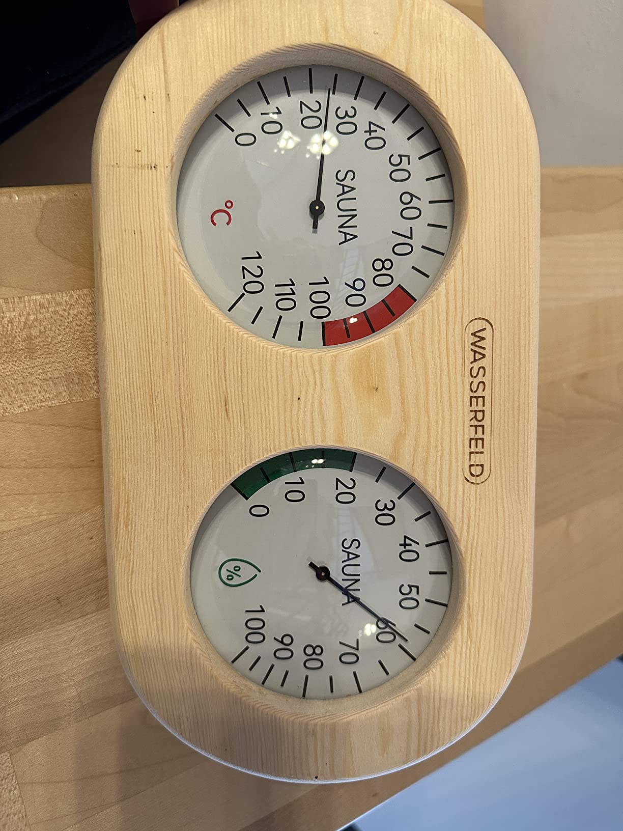 Präzises 2in1 Sauna-Messgerät aus Buchenholz